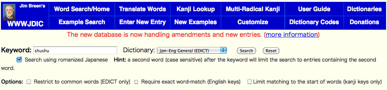 Cons: However, because it is geared towards Japanese speakers, it doesn’t have the reading of kanji in the definition, and you can’t enter words in romaji or kana like you can with Jim Breen. Because of this, you really need to use it with Rikaichan.