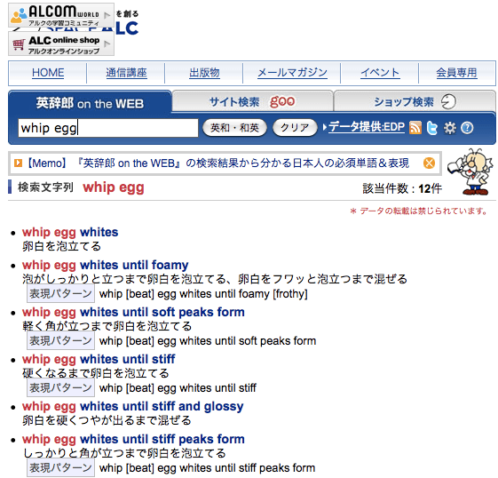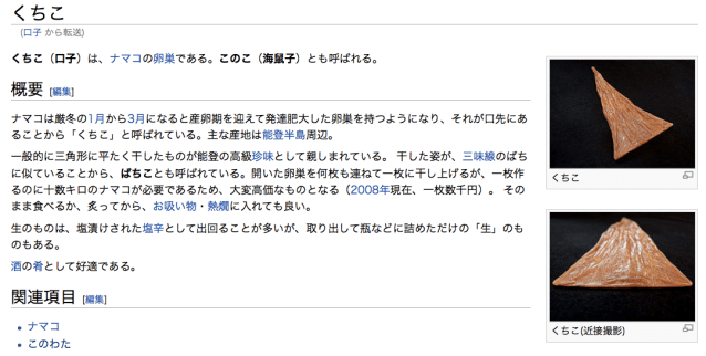 Pros: I often come across food words that are not in dictionaries, or the definition is something I have no visual context for. For example, I once came across the word  シュシュ in a fashion magazine I was translating for a class. My English-Japanese dictionaries could not tell me what this was, so I image searched it. It’s a scrunchie. Who knew? Wikipedia.co.jp is good for the names of herbs, medicine ingredients (do you know what’s in your Japanese cold medicine?), and foods, and if you can’t figure it out from the Japanese, you can switch to the English version.