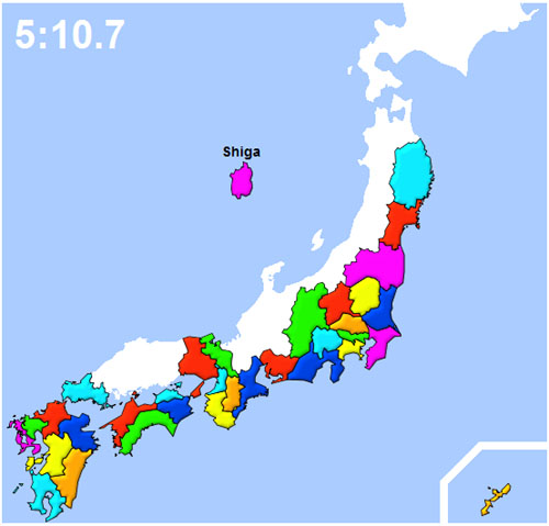 The second, from http://www.mapmsg.com/ is Statetris-Japan. Based off of the classic Tetris, of course, the prefectures fall as individual shapes for you to situate properly on the map. Since you’re confined to the dropping process (meaning the south-eastern prefectures come down first), it seems like it might be easy, but there’s three levels of difficulty to the game (Easy, Medium, and Hard).