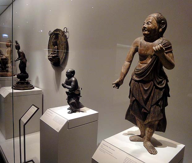 Even more so than archives & library work, conservation is an extremely specialized skill set, requiring extensive training. I never cease to be fascinated, truly fascinated and amazed at what these people do. Conservators work to protect artworks from deterioration and damage, often working to clean and repair them. However, these days, “repair” more often than not does not mean restoration – that is, repainting or otherwise restoring the appearance of the artwork – so much as it means simply structural repairs to protect the work from further damage. This can mean gluing a pot back together from shards, pasting a tear in a book, or cleaning an artwork so that biological or chemical accumulations cannot do further damage; whatever conservators do, they always make sure that their work is well-documented, and reversible, so that in the future, if and when better technologies or techniques are available, future conservators can do what they need to do more easily. Conservators also advise curators and the rest of the staff as to whether certain pieces are stable enough to be exhibited, and how to best show them (and for how long) to minimize the risk of damage. Light and moisture alone can be rather damaging to certain types of artworks – fading or discoloring pigments, and discoloring paper or silk – and so, certain types of artworks, especially Japanese woodblock prints, cannot be left up for too long.