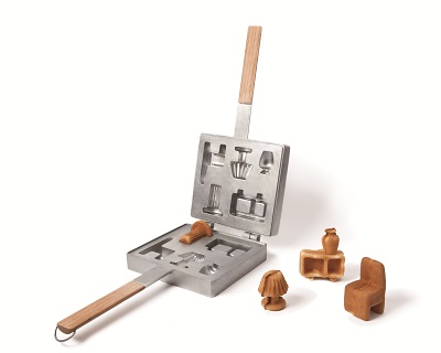 We present furniture pan, an object that mixes both traditional Japanese small cakes ‘baby castella’ with a Portuguese egg based pastry called ‘ovos moles’. Using the same molding technique we created a new typology of object and at the same time a new tradition. Playing with food is now allowed. Serve your favorite pieces of furniture to your friends and kids. You can create your eatable living room and paint you furniture cakes with your favorite jams and toppings. In this way when the user gets full of his furniture he just eats it without creating disposals. And start all over again with a different recipe. Enjoy your furniture! Buon appetito. (Sapore dei Mobili Press Kit)