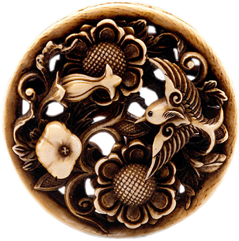 “Ishikawa Rensai carved this ivory and inlaid piece depicting lotus blossoms and a bird in the mid-to-late 19th century.” Via Collectors Weekly