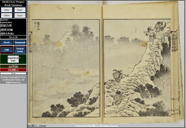 The final portion of the website is “Illustrated Book,” another database (regularly updated) that provides an online database of almost all of the illustrated books of Hokusai. The Hokusai Project website says the following of Hokusai’s books: