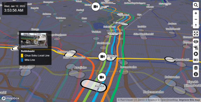 Drawing on public transportation data, this site provides a real-time 3D digital map of Tokyo’s transportation system, coloring each line and animating their travel (and even showing delays!). You can poke around in multiple languages, access live cameras that stream on Youtube, and even toggle layers for special events (fireworks) or weather (rain).