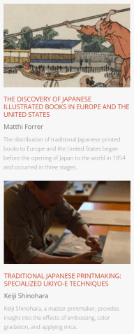 The site offers four main features, Essays, Search, Resources, and My Research. The Essays section offers half a dozen peer-reviewed examinations of different aspects of the collection by a wide variety of scholars. Whether you’re seeking reflections on Hokusai as an illustrator or more technical information on the woodblock printing process, these essays are a rich deep-dive into the digitized Pulverer materials.